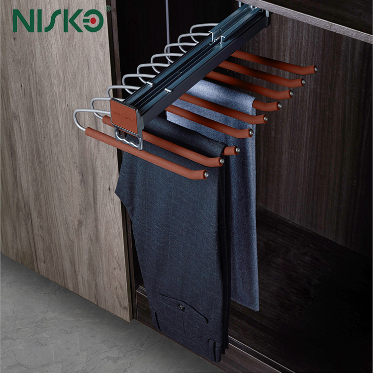 Soft-Closing Top Mount Pants Rack With Leather Bar