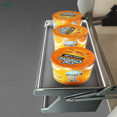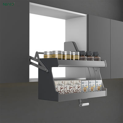 Includes an upper tray for spice bottles, jars, or condiments and a lower basket for boxes, tea bags, coffee pods, or cooking essentials—keeps frequently used items organized and within reach.