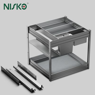 Equipped with quiet, ball-bearing slides that allow both tiers to pull out completely—ensuring easy access to items at the back without digging or bending.