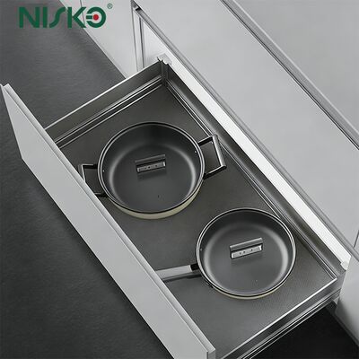 Installs directly inside standard base cabinets (typically 45–70 cm depth), transforming underused space into an organized, accessible storage zone.