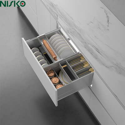 Features a two-tier sliding organizer that maximizes vertical space in deep drawers—perfect for organizing pots, pans, utensils, plates, bowls, chopsticks, and more in one accessible unit.
