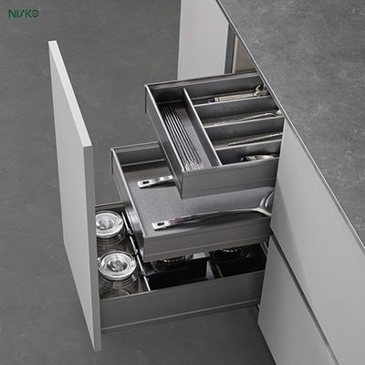 Features three independent pull-out levels—optimizes vertical space in deep cabinets, ideal for organizing spices, bottles, cutlery, and pantry essentials.