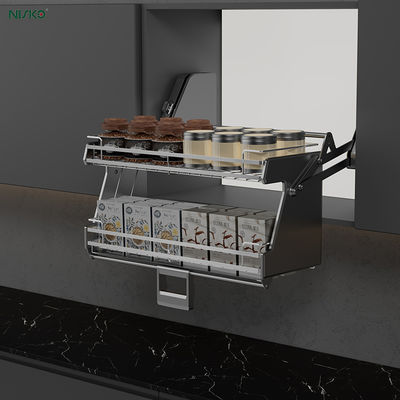This pull-down pantry organizer basket is a revolutionary kitchen upgrade that turns awkward upper cabinets into a smart, ergonomic, and beautifully organized storage solution. Whether you're storing spice jars, cooking mixes, or condiments, this dual-tier organizer keeps everything neatly arranged, easily accessible, and within reach—making cooking faster, safer, and more enjoyable. Perfect for modern kitchens that value both functionality and style.