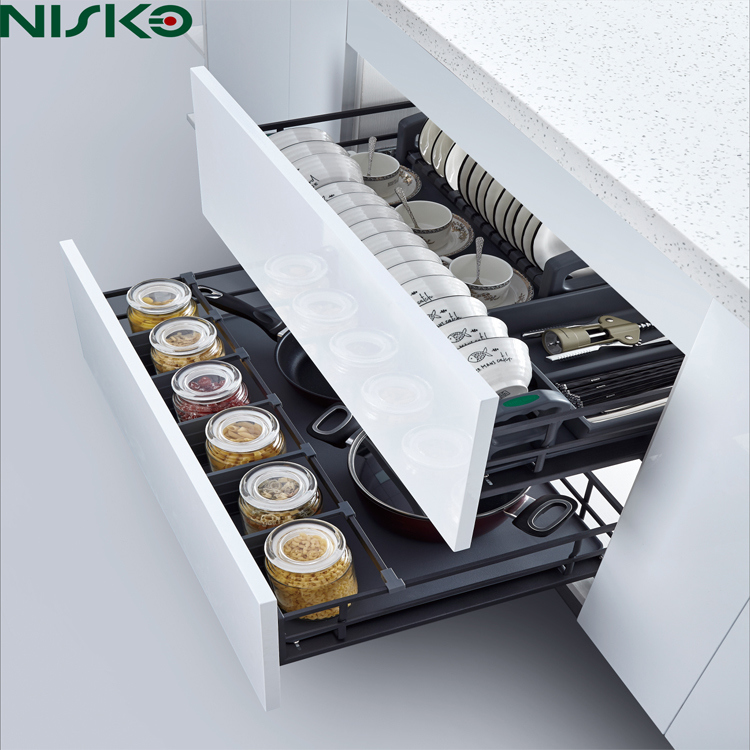 Combines a top tier for dishes and cups with a bottom tier for pots, jars, and utensils—turns one deep cabinet into two fully functional storage zones. Ideal for small kitchens or high-capacity households.