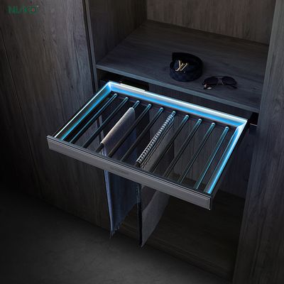 Combine elegance, function, and smart lighting with this glass pull-out trouser rack—turn your cabinet into a high-end fashion display where every pair is visible, protected, and ready to wear.