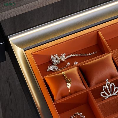 The Pull-Out Closet Jewelry Box with Soft-Close Accessory Tray blends elegance and intelligence—keeping your most cherished pieces safe, visible, and always within reach.