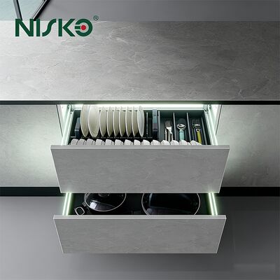 Equipped with integrated LED lights that automatically turn on when the drawer is pulled out—eliminating dark corners and making it effortless to find what you need in low-light conditions. The soft glow adds both functionality and modern elegance to your kitchen.