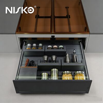 Designed with a minimalist, high-end look featuring matte gray finish and clean lines. Includes built-in LED lighting that illuminates the entire rack when activated—enhancing visibility and adding a luxurious ambiance to your kitchen.