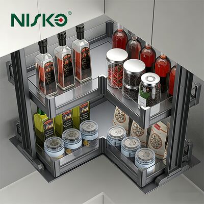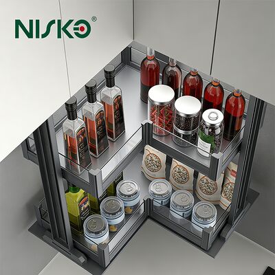 Designed as a corner-mounted unit that fits perfectly in L-shaped cabinets, maximizing space utilization in tight areas. Perfect for small kitchens, modern homes, or compact layouts.