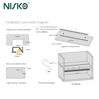 Ultra-Thin LED Embedded Light Strip Aluminum Profile Cabinet Closet Indoor Lighting